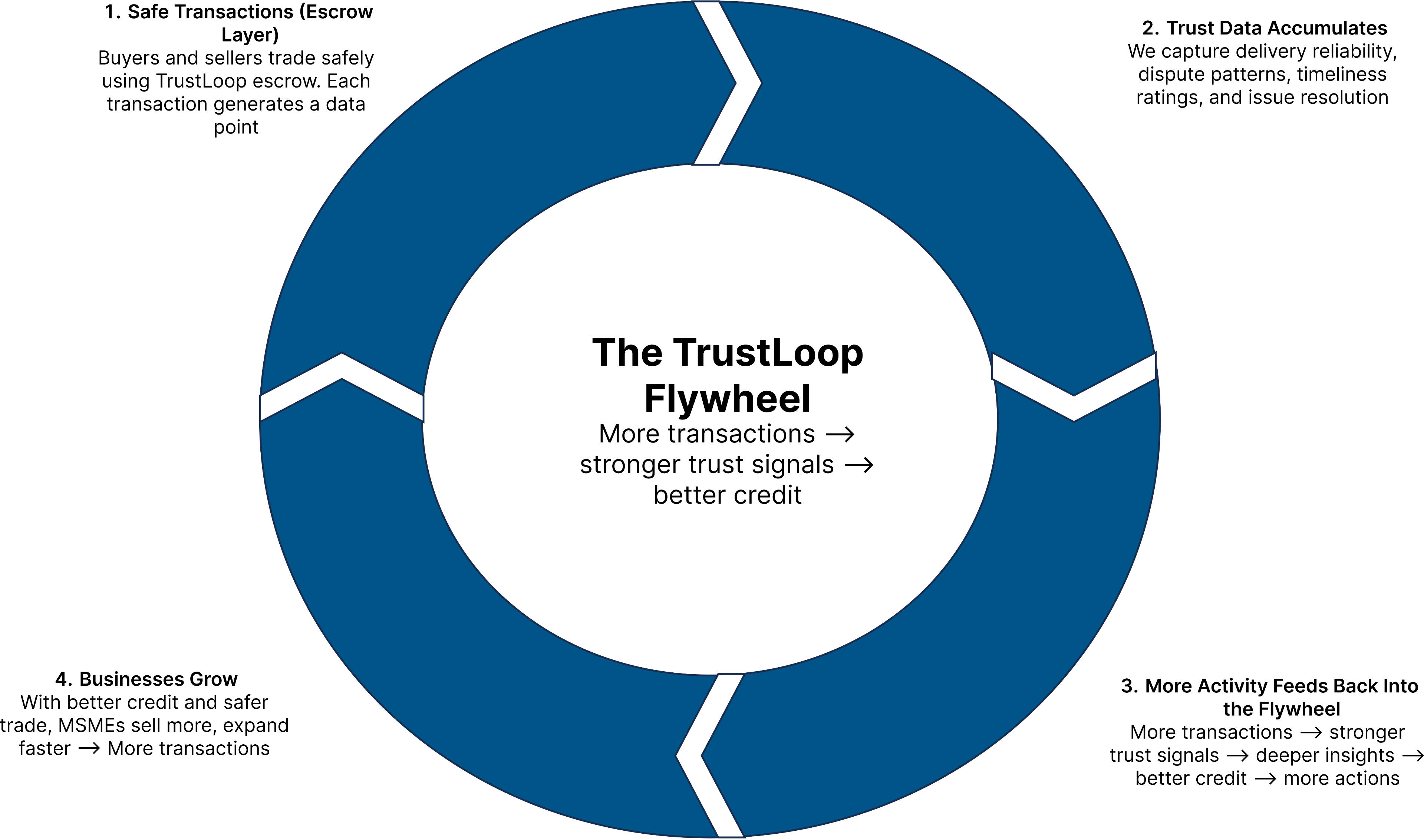 starting with safer payments and growing into credit, reputation, and financial access for every MSME.Trade should be borderless.